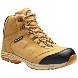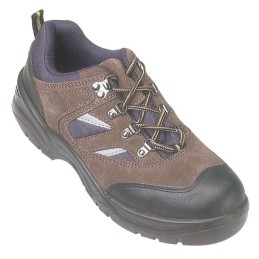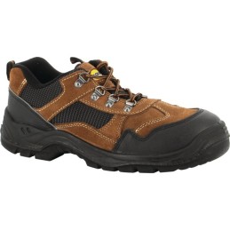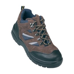 Norme EN ISO 20345.Tige cuir croûte de vachette marron et nylon bleu.Semelle double densité PU.Doublure Tybrelle non tissée respirante.Soufflet rembourré.Col rembourré.Avant et arrière renforcés.Points rétro-réfléc ...