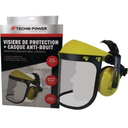 Kit livré dans une boite carton couleur brochable comprenant 1 visière grillagé + 1 casque anti-bruit.