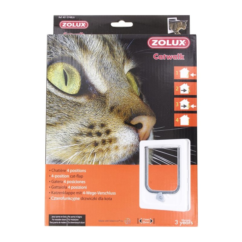 Chatière 4 positions (ouvert - entrée seule - sortie seule - fermé) avec battant transparent