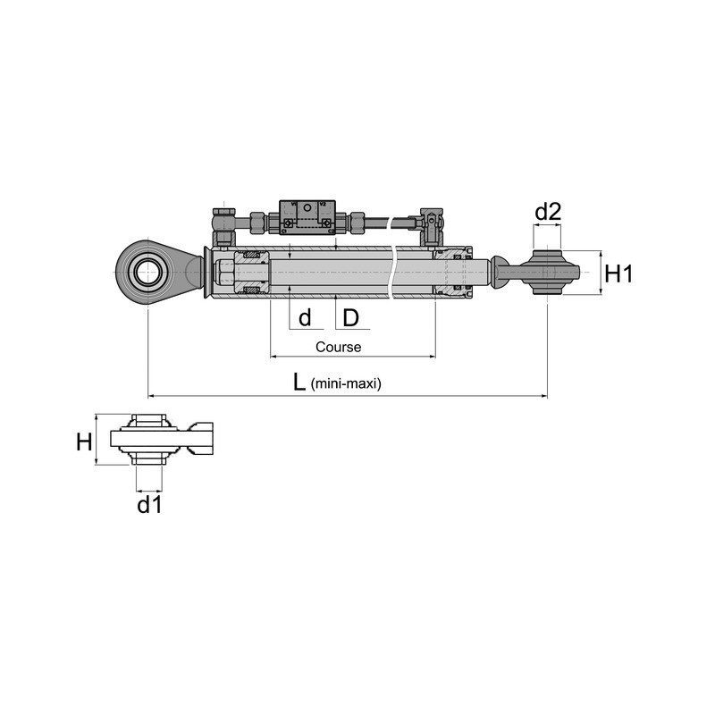 Barre de poussée hydraulique simple à 2 rotules
