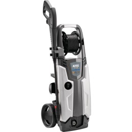 Pompe axiale aluDispositif TotalStopSystème Easy startRéservoir de détergent intégréLivré avec : 3 buses : Réglable - Rotabuse - Buse mousseFlexible 8 mètres polyamide sur enrouleurBrosse de lavage